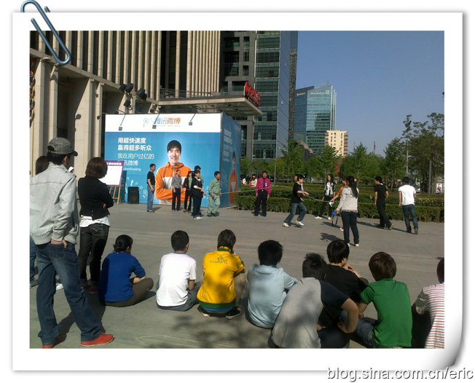 北京大望路万达广场门前新世界员工跳绳比赛