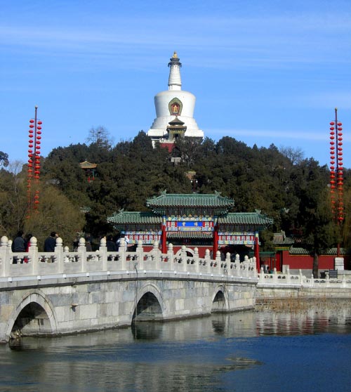 乾隆钦定该景石碑原在今北海白塔山西坡悦心门前。乾隆五十一年(1786年)迁到白塔山东侧现址。