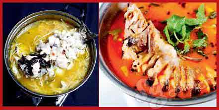 在贵州,酸菜、酸汤是家家必备的,完全靠生物自然发酵的酸汤爽口提神、去油化脂。最典型的就是苗家酸汤鱼,乌江鱼无鳞少刺,是最适合的食材。从一窝浸着肥美鲜鱼的火红酸汤中舀起一碗,浓浓的酸味和着鱼的鲜味一起冲进嘴里,真是过瘾。