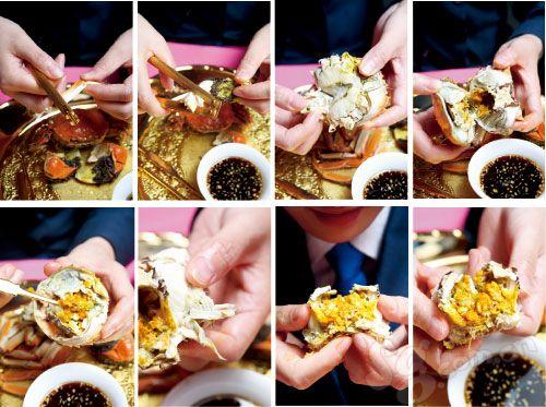 编辑点评:吃蟹需要细细品味,慢慢咀嚼,一盘好蟹上席百味淡绝不夸张,再配上优雅的姿态,有点运筹帷幄于股掌中的气势,吃完之后还能回复原状,完美的结束,这火候儿是需要修炼的。