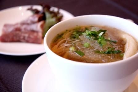 作为头盘的芒果奶酪三文鱼卷拉开了美食之旅的序幕。这道菜味道与口感俱佳,一口咬下去清爽的芒果粒带来最初的味觉冲击,然后自然而然地引领你品尝到了新鲜的三文鱼。味蕾被醇厚浓郁的奶酪所包裹,为舌头做一次充分的按摩,最后罗勒籽的甜味又突出了刚才的感受。食材的口感层次分明,最后又充分地融合在一起,给人前所未有的爽滑感受。