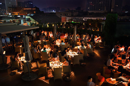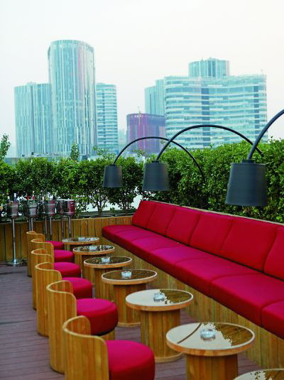 要说三里屯露天酒吧里菜品做得最好的,非Fez Bar莫属。与那里花园知名的西班牙餐厅Agua同属一家,可想而知Fez Bar的出品绝非一般。从那里花园电梯直奔六楼顶层,如棋盘般方正布局的Fez Bar牢牢占据着三里屯上空一处极好的视野,屯里风景尽收眼底。地儿不大,但是有条有理,西班牙人的热情从这鲜明的大红色块沙发中可见一斑。尽管在京城好天气不是常有,但好露台却是常在的。