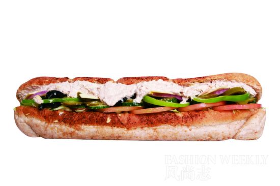 主要加入了生菜、番茄片、洋葱条、青椒条、腌黄瓜片,也可根据个人口味加入辣椒和黑橄榄。奶酪被切成三角形,能为三明治带来更加细滑香甜的口感。