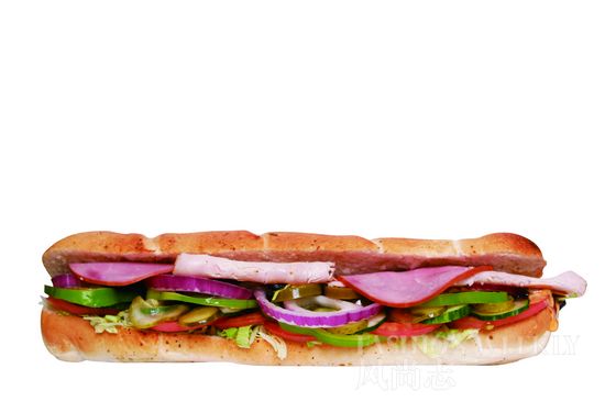 制作步骤:①取烘培好的新鲜香奶酪面包,以45度角切开;②在薄的面包一侧放上1片火腿、2片鸡胸肉以及2片牛肉。肉类经过非常严格而自然的烟熏制作,口感与口味都非常鲜美。然后再铺上2片三角形的美味奶酪;③在厚的面包一侧铺上新鲜蔬菜:生菜、西红柿、黄瓜、洋葱、青椒、酸黄瓜等;④淋上加西南酱、芥末酱以及烧烤酱,需要淋在肉类和奶酪上,以增加口感。如有需要,还能在肉和奶酪上撒上一些胡椒粉。