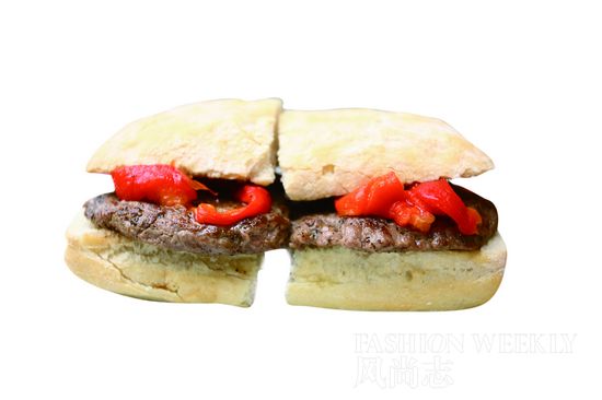 ②牛肉饼:选上等澳洲安格斯牛脊肉,打碎后加入洋葱粒以及秘制配料,压制成饼状后,用橄榄油煎熟封汁,最后放入烤箱烤出油。