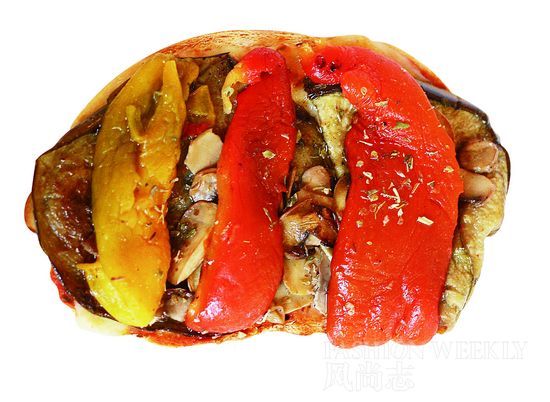 主要加入了生菜、番茄片、洋葱条、青椒条、腌黄瓜片,也可根据个人口味加入辣椒和黑橄榄。