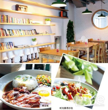 雕刻时光对大家来说并不算陌生,不过这家开在三联书店二层的咖啡馆绝对是京城最有特色的雕刻时光分店,它有着不同以往的绝对特色,同时将生活饰集和蘑菇结合在一起,成为最具特色的一家店,可以说这里是书店、创意店,也可以说这里是美食店。首先,宽敞的店面让人豁然开朗,读书区和餐吧制作台的明显分隔让店面更显清爽整齐,最舒服的时候是上午10点到下午3点期间,明媚的阳光透过窗棂射进屋里,一切都能让人沉醉其中。充满诗意的名字与店里木质桌椅相映成趣,厚实的质感仿佛沉淀着岁月的重量。店里的书以外文原版小说、绘本、电影、文学为主,随手翻阅一本都足够让你用几天时间再三回味。要说对会员最大的特权便是最深处的会员专区,这个以旅行生活为主题的地方布置得像迷你阅览室,两旁书架上分门别类地摆放着各国旅游手记,如果你是旅游发烧友,这里一定有足够大的吸引力让你时常惦记。美食自然是与读书不可分割的一部分,这里的食品味道很多、很独特,从简单的甜品咖啡到丰富的沙拉、主菜,一下午的时间,像是时光与食光的漫游记一般。
