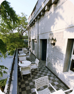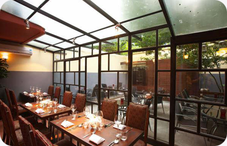 前门23号的几乎每一家餐厅都拥有别致的户外露台,同样优雅却又各有不同。意大利餐厅Ristorante Sadler的户外,有一棵硕大的树木,而餐桌就被摆放在树荫下。阳光恰好却又不会过于灼热。如同单独辟出的世外桃源。主厨在米兰的餐厅获得了米其林二星的荣誉,现在他将美好的意大利北部美食结合他独特的创造性手法一同带入北京。这里拥有优雅格调的玻璃天顶和树荫遮蔽下的露天座位。菜中的一道生牛肉carpaccio,选用牛里脊的部位,将帕玛臣芝士和奶油混合打成雪白的软酪状,并洒上来自阿尔巴的松露,独特的大地般的性感味道必会令你难忘。