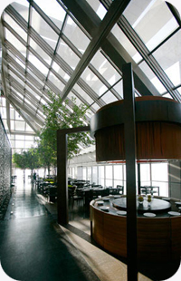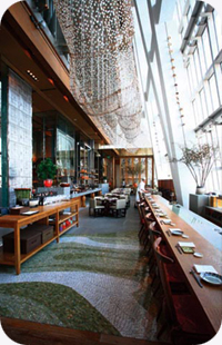 “城市里最高的餐厅”,要保持住这个头衔,不容易,因为这个高度总在被更新。不过,位于环球金融中心柏悦酒店的“世纪100”堪称真正的重量级,91至93楼!金茂的尖顶就在脚下。每周三次,都会有一大批鱼在清晨飞离日本,当天下午一点左右到达上海机场。同时,飞抵上海的还有来自美国纽约、华盛顿和西海岸的生蚝和澳大利亚的顶级和牛。这些食材的共同目的地就是世纪100餐厅。世纪100人气正旺,据说是在设计上展现了“中国式私人住宅”的理念所以在星级酒店中,属于相当个性的一款。不过个人认为它最特别的地方还是来自于地理位置的得天独厚——有谁不愿意在全上海最高的楼里住他一夜呢?而位于酒店最高层的世纪100,显然因此充满了卖点。餐厅空间高阔,设席三四百,节奏轻快的chill out音乐将这个巨大空间激活。40多种鱼生有季节性的,也有常年供应的,11月刚刚在日本上市的沙丁鱼当月就能在这里尝鲜。牛排专用的玻璃冷柜就摆在餐厅的一隅,很有肉感。有机南瓜汤、黑山猪排、散养春鸡、还有法国人在中国饲养的肥鸭肝通通写满菜单。世纪100将国际多元风格融会贯通,粤式烧鸭赢得不少赞誉。