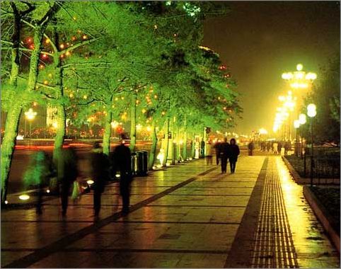 你可以去天安门广场坐着吹吹风,人多点还能就地铺个摊子打扑克等着看升旗,但千万不要随便抱个大瓶子喝饮料,尤其是雪碧——具体为什么不解释,就当作是影响不好吧;你也可以拖家带口在王府井步行街上来来回回的窜咄,掏出你的数码相机和DV变换各种组合抱着步行街上的那些个铜人雕像照啊照啊。得瑟累了,100元也够你们全家在旁边的小吃街吃个全家餐,以一家三口为例,推荐组合为:10个烤肉串(3元一个)+3碗卤煮(10元一碗)+1盒驴打滚(15元)+2串糖葫芦(5元一串)+0.3中南海一盒。