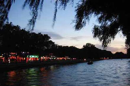 波光粼粼的湖水、悠闲自在的环境,现场调制的鸡尾酒以及独具创新的欧式菜单。在蓝色港湾,你绝对能找到最浪漫最有品质的赏月方式。这里的酒吧街正对朝阳公园北湖,视野开阔,再加上即将开放的十里荷花,如果运气好,还能碰上王菲、陈坤这样的大明星!另外这里的酒吧在北京夜场名气很高,晚上都有演出,或文艺或劲爆或香艳,再加上进口新鲜牡蛎、各类糕点甜品,绝对是中西合璧的浪漫赏月首选地。