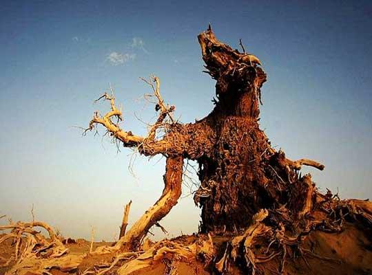 南疆胡杨林 新疆境内看胡杨: 它曾经广泛分布于中国西部的温带暖温带地区,新疆库车千佛洞、甘肃敦煌铁匠沟、山西平隆等地;如今,除了柴达木盆地、河西走廊、内蒙古阿拉善一些流入沙漠的河流两岸还可见到少量的胡杨外,中国胡杨林面积的90%以上都蜷缩于新疆,而其中的90%又集中在新疆南部的塔里木盆地。