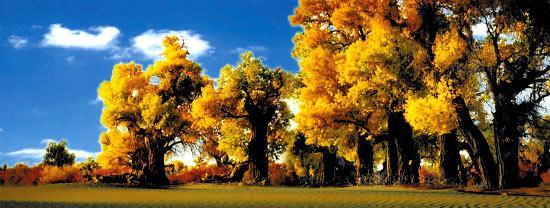 胡杨最佳观赏时间:9—11月 胡杨最佳观赏地:内蒙古阿拉善盟;新疆塔里木河流域