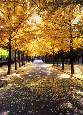 银杏最佳观赏时间:10月下旬--11月上旬。