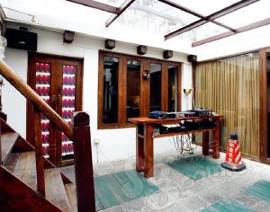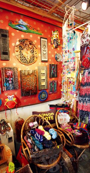 遇趣轩 深隐老街里的民族风 名字让人误以为它只是个古玩店,老板说,四月中旬店铺可能进行装修,再改个贴切的名字。其实小店装饰很“少数民族”,花花绿绿的刺绣腰带及各种刺绣小包悬挂在墙壁上,蜡染的布料叠放在柜架上,墙角摆满了各种绣花鞋,精致绝伦。银饰品是遇趣轩主营物品之一,粗粗看起来和别家首饰不一样,但是工艺和原材料据说都是百分百出自贵州的一个老艺人之手,他所在地则是专门制银器的小村。纯手工的制作确实没有任何机械的痕迹。这里还经营民族气息浓郁的服饰,如全手工制作扎染的百褶短裙,店主颇为自豪地说这些东西都是当地人做的,而且在当地这些手工裙子也很少见了。