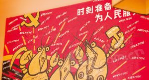 酷虾听起来很有趣,问了老板才知道缘由——这里“专业治虾”——主做虾菜。比如闭月羞花,其实是剁椒蒸虾。而这里的菜品大部分是湘菜,老板是有20多年从业经验的湘菜厨师。2003年来到北京之后,因为听说北方人爱吃虾,便抱着半做事业半玩乐的心态开了这家小店试手,结果颇受欢迎。而这家店里,除了个性十足的菜品之外,更有个性十足的装饰,正对窗口的墙上挂着一幅油画,一只只耀武扬威的大虾旁写着“时刻准备着,为人民服务”。吧台旁还高挂着侗族少女的节日套装,这也多少体现了店主半玩乐的心态。