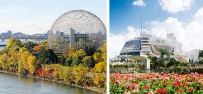 这个被称为“生物圈”的巨大的玻璃球直径76米,高62米,坐落于圣赫勒拿岛上的让·维普公园(Parc Jean-Drapeau),前身系1967年蒙特利尔世博会的美国馆,现为蒙特利尔一家以水和环境为主题的博物馆。1992年,蒙特利尔的建筑设计师éric Gauthier接受了一个好比“在瓶子里造船”的重任,重建“生物圈”。如今的“生物圈”俨然是全球的知名建筑,也是蒙特利尔建筑遗产的一部分。博物馆内的互动体验展现了大圣劳伦斯湖(Great Lakes-St Lawrence)生态系统中有关水、气候变化和可持续发展等主要的环境问题。