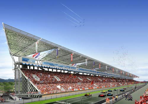 首次举办F1一级方程式赛事的韩国,将赛道建在了全罗南道灵岩郡西南海岸旅游休闲城(又名“J project”)开发区,赛道名为“韩国国际赛道(Korean International Circuit)”。该赛道总面积达150万平方米,总投资费用更是高达2500亿韩元,无论规模还是气势都相当震撼。该赛道目前还在建设当中,预计于7月份完工,是亚洲最长的赛道。能容纳12万名观众的观众席,在韩国所有的体育设施中,规模是最大的。