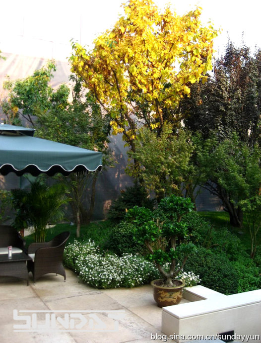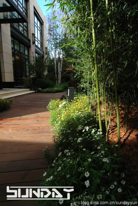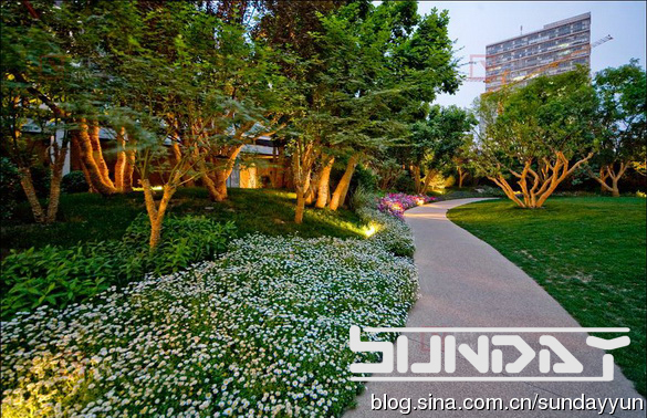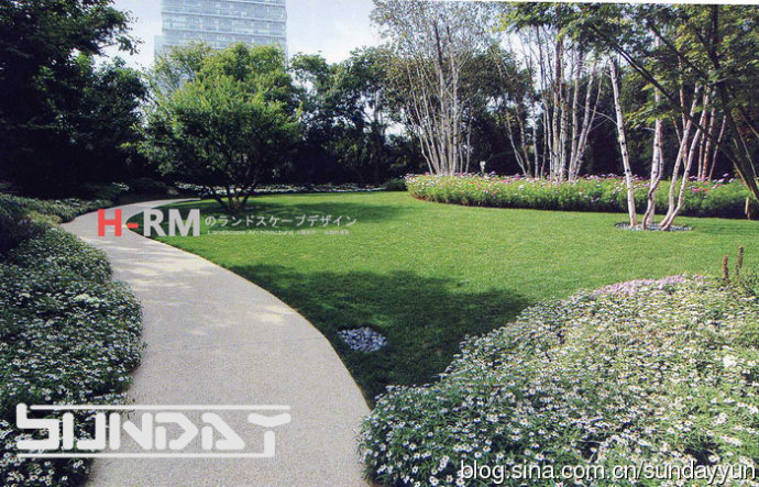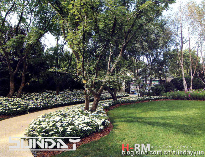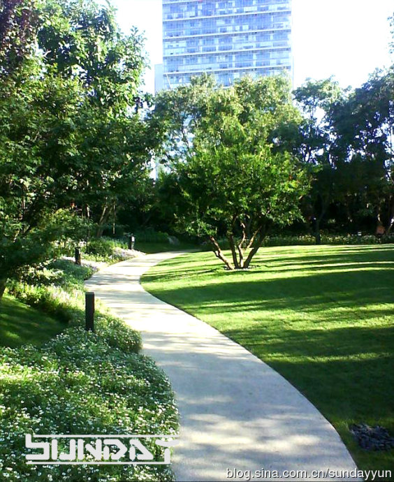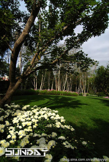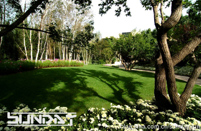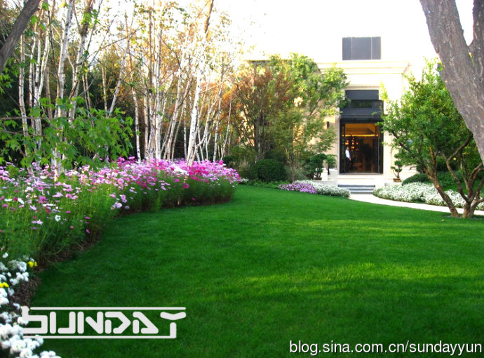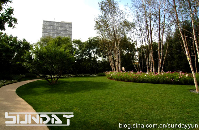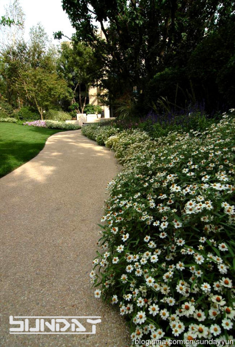 草坪灌木比相当到位 感觉很好 不过这么大面积草花 将来更换起来会比较麻烦。。