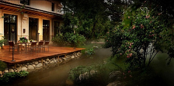 在园林景观、建筑选材与设备等诸多方面,继承了中国古典建筑的精韵所在,选择了以西技中魂为主线的设计思路而独创中式官宅外观。而室内空间布局则沿用四合院的基本结构,但将层层递进的平铺方式立体化。颐和原著甄选欧洲千年石材,历时5年收集1000余株珍惜成树,利用植被和水系,使项目的景观成为颐和园后湖的延续。