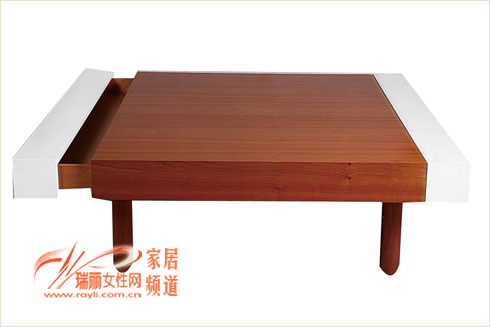 这款茶几的特点在于两侧都有可抽拉式抽屉,大大增加了茶几的储物功能,樱桃木的自然纹理增添了茶几的天然效果。13086元1000×1000×350 欧罗巴