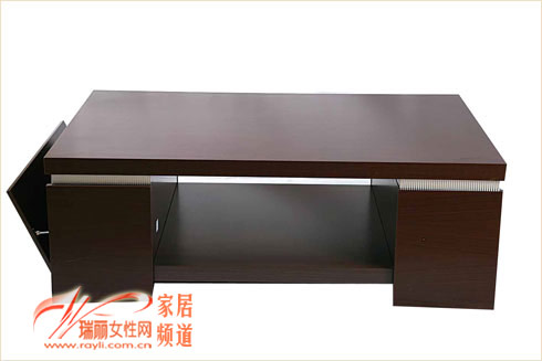 这款茶几的特点在于收纳功能强大,两个宽大的桌腿便是两个储物空间,推拉式门隐藏物品,中间的搁架也可以摆放各种杂物。920元1200×750×420 皇朝