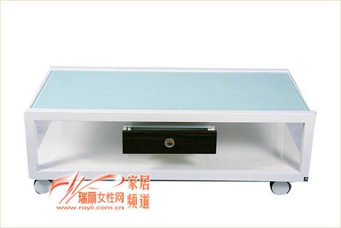 这款茶几移动灵活,白色框架配有磨砂玻璃桌面,下层还多了一个小抽屉,可以将钥匙或小饰品收纳其中,增加了收纳功能。1300元1200×650×415 皇朝