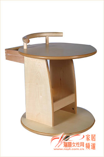 可移动的边几,适合摆放在沙发旁,它的收纳功能隐藏在边几背面,带有抽屉和搁架,平时可用来摆放电话或花瓶。660元 515×515×655 曲美