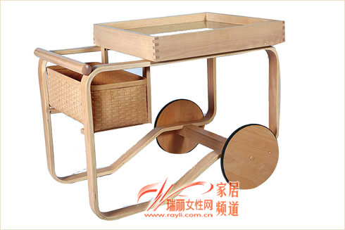 灵活可爱的边几,带有两个大木轮,就像是一个推车,除了造型上可爱之外,它的收纳功能体现在尾部带有篮筐,可将零食储藏在里面。1075元 520×710×730 曲美