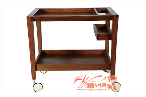 这款小巧的实木边几带有四个车轮,可以当做一个移动的酒架,下层摆放酒瓶,上层放酒杯,中间的小盒子用来放开瓶器,适合家庭聚会使用。1155元760×526×600 曲美
