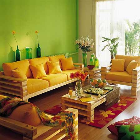 整个居室的黄绿色彩比较温馨 热烈 而且比较养眼