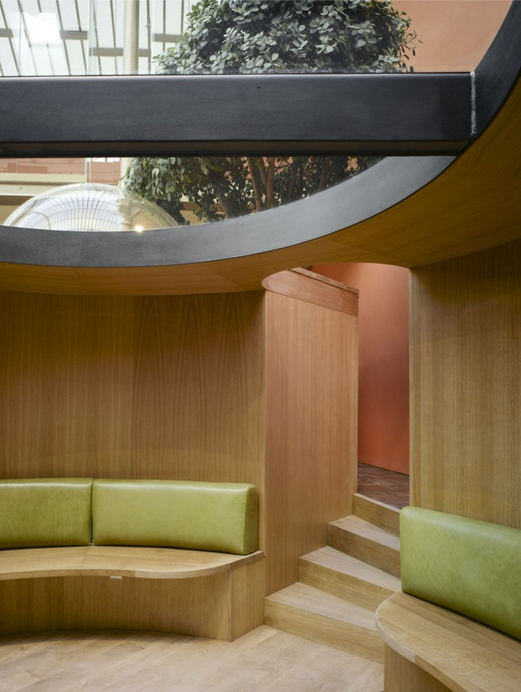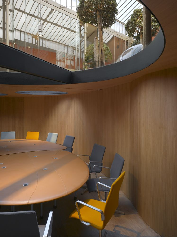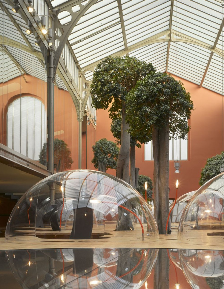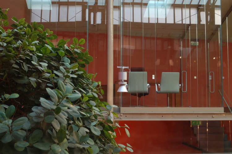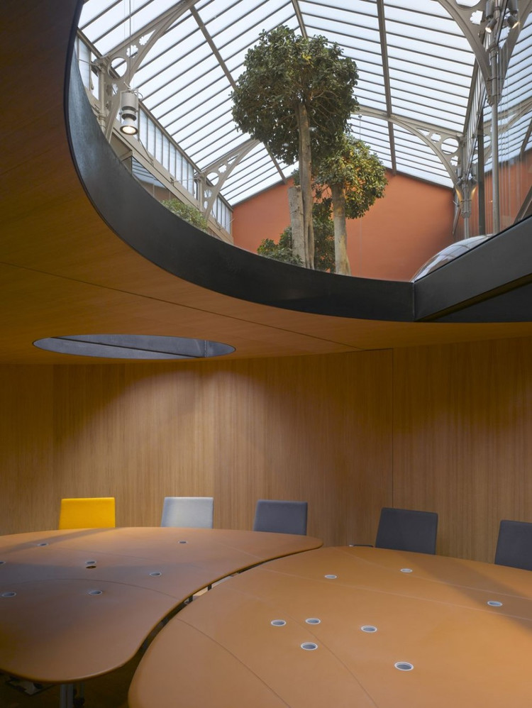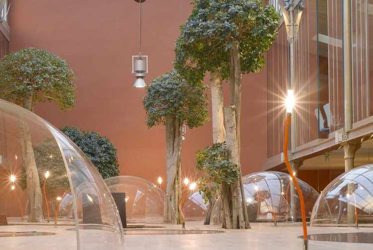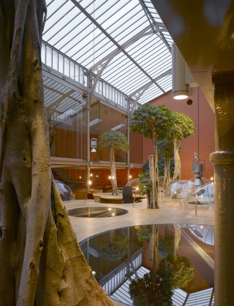 Pons+Huot的办公室,是由法国Pottgiesser设计完成。在偌大的一个空间里有大株的植物存在本身就有一些超现实味道,何况每个人的都有自己一个半圆玻璃罩的”私密”环境,又多了些许外空之类的感觉,给人很深的印象。