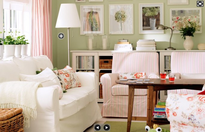 提高了明度的红色和绿色,变成了粉色和淡绿色,也就是说,选择淡雅的互补色在房间中,既能有对比制造的活力效果,又能让房间氛围相对柔和。