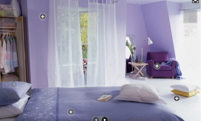 如果您觉得这样的房间过于平淡,甚至有点单调。可以在房间中运用不同质地和图案的纺织品,或是选用一对比元素,来增加视觉的亮点。如:紫色的互补色─黄色,也就是和紫色反差最大的颜色,给房间增加一点跳跃。