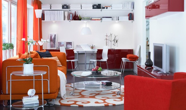 这种配色方案使房间显得充满活力、生气勃勃,适用于装饰家庭活动室、厨房、游戏室,甚至是家庭办公室。由于强烈的反差和对比,建议使用互补色时,将他们的比例调整为一个作为主体色,一个作为点缀色。并且适当的使用自然的木头色、黑色或是白色进行调和。