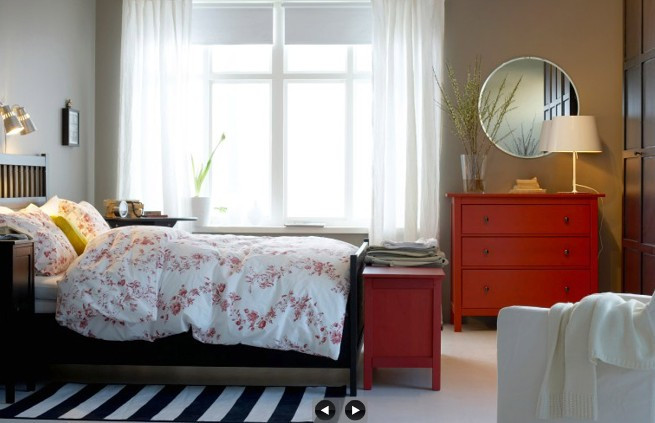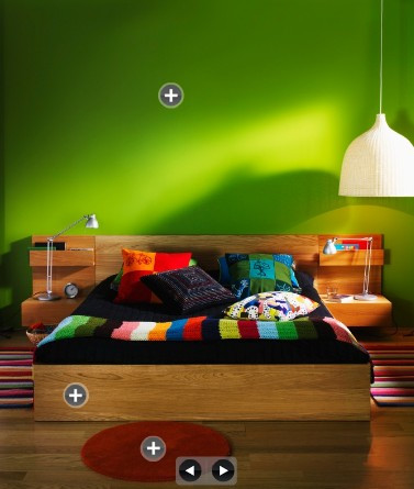 点缀色:把这对互补的比例大大的拉开,绿色用在墙面,红色用在纺织品上,让房间既亮丽动人,又协调一致。