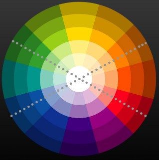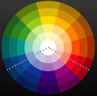 彼此相互靠近的颜色都是彼此的类似色,但由于这几个色相环明度的变化,也就是说颜色深浅和纯度的变化,用在同一个房间中所制造的效果,会完全不同。