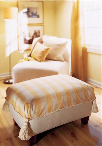 小小的正方体搁脚凳,上盖上一块四角带流苏的套子,房间里可以搭配摆放一套未经染色的家具,周末惬意的生活就这样开始了。