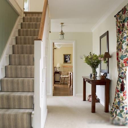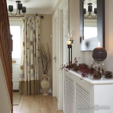 案例十一:这个走廊也许没有太多的个性,有点中性化,但是细节的设计却是独具匠心的:门厅的尽头挂一款旧织物窗帘,和褐色的墙壁和白色的柜子完美搭配~~~