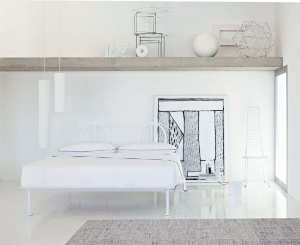纯白简洁的钢管,搭配床头简练的欧式风格曲度,使整个卧室都跟着安静了起来。喜欢精致生活,想要与众不同,或坐或仰,任你充当这床榻上的慵懒土豆。钢管材质与同样保持本色的木质装饰搭配,在纯白色空间中营造出独到的静谧感受。