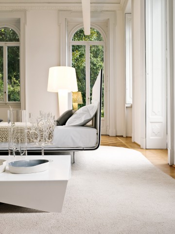 在加班累极的时候,真希望自己变成一张羊毛毯,就那么舒展开来,平铺在床上。羊毛面料,总是给人柔软贴心的触感,用厚羊毛毡制作的床靠背,更是从内到外给你至真的温暖。内衬的柔性板材在你倚靠的时候能够适时适度给你一些回应,贴心呵护你的颈背部。