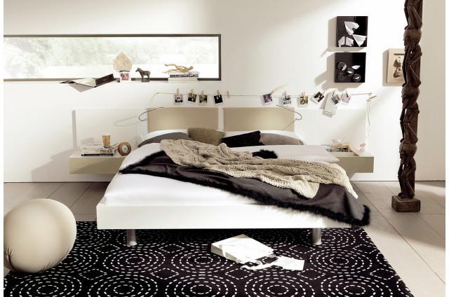 恋床的时候也要讲究情调和氛围,想让卧床兼具就寝和陈列功能,这款床是不错的选择。床头边沿、玻璃层板组合,俨然成为一个相当实用的收纳区,还特别配置了点状照明光源,相框、饰品在这里都能找到展示的一片天地。床头两边的阅读灯设计相当人性化,避免了在寒冷冬日睡意浓浓的时候还要爬出被窝关灯。