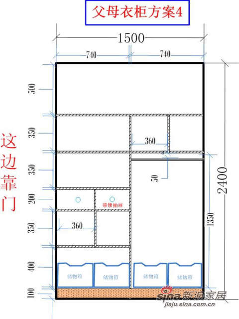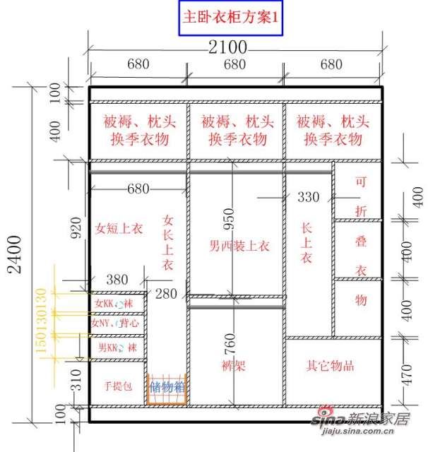 当然,以上这些资料只能借鉴,最终还是得结合自家的实际情况进行设计。下面上偶设计的三个衣柜的最初方案和最终方案,两个方案进行对比,才能说明问题。