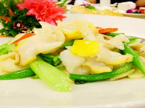 第三道:减肥者无法抗拒的——沙律片皮鸡。这个菜真是暗藏玄机,完全被表面那张薄脆的鸡片迷惑了,哪知下面还有生菜,火腿,沙律之类的,甜甜的,有淡淡的奶香,一个吃下去,还有点分量呢,减肥的mm慎点。否则,肯定抵挡不住诱惑,减肥大计必将功亏一匮。 第四道:压轴田园小炒——鲜蔬炒螺片。知道为啥推荐它么,前面那些虽然好吃,可是太太太长肉啦,就这个,好歹有点蔬菜,又清爽。螺片可口爽脆,多吃几口,减轻一下前面几个菜带来的罪恶感。 |