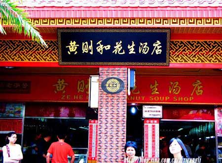 顶着百年老字号的名气,黄则和花生汤算是经历了岁月的磨练。 花生汤是寻常之物,应该技术含量低才是。不过,黄则和的花生汤其汤色乳白,清鲜甘甜;花生片酥烂但又不碎,入口即化,不是一般的功夫就能熬制出来的。店里的人都是冲着名气而来,找个座位竟然等了半小时之久。这里不仅有出名的花生汤,各式糕点,闽南特色春卷,年糕,沙茶面,海蛎煎,面线糊都能吃到。