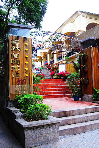 花时间咖啡的店址在鼓浪屿岛上的安海路36号,是一橦有年头的历史建筑,叫番婆楼。