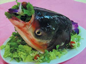 古人云:“鳙之美者在于头”,民间也有“鳙鱼头,肉馒头”一说,鳙鱼头是历来被美食家所推崇的美食之一。专家认为鱼头上的肉很少,而鱼头中的蛋白质含量不仅丰富,其中易被人体吸收的氨基酸也较多,非常适合现代人的饮食要求。难怪俗语说:“鱼头肉渣。”以鳙鱼头辅以老母鸡汤慢火炖煮,其营养价值之高尤见一斑。