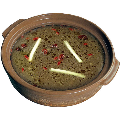 德庄汤其色黑褐鲜香无比,具有天然、营养、开胃健体之特点和功用,曾有食客赞曰:不辞边际到德庄就为品尝一口汤