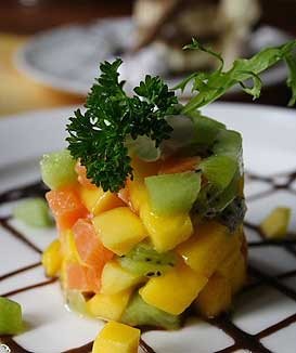 地中海式餐饮会所,提供精选西餐和红酒、咖啡,是一个市中心难得的旺中带静的餐厅,口感特别的异国美食,热情周到的服务,适合三五知己聚会和商务晚宴;特别推荐刁草三文鱼和甜品提拉米苏,值得一尝,这里更以环境幽雅而闻名,两幢小别墅隔成不同的小间,用轻幔做门帘,宽大的沙发和小茶几,灯光微亮而温暖,花园铺设条木地板,露天雅座燃着幽暗的烛光,耳边听着潺潺的水声,感觉像在巴厘岛度假。西餐做得很精致,用料不错,口味地道更加适合两两情侣慢斟细饮。