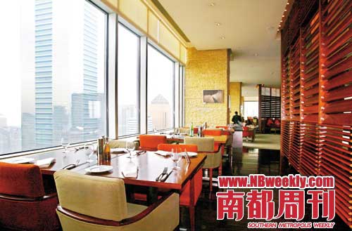 深圳君悦酒店32楼的乐厨餐厅可以饱览深圳罗湖区的夜景,